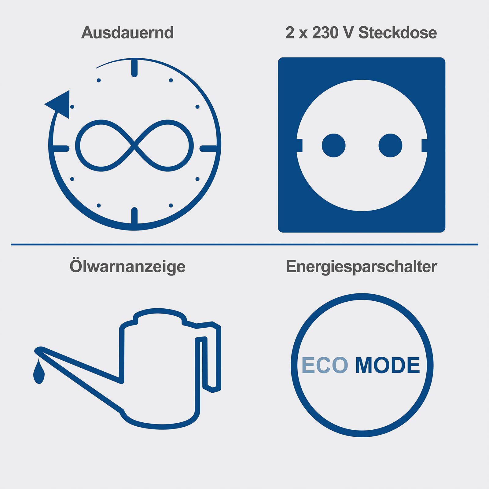 - Luftgekühlter 4-Takt-Benzinmotor mit 5,1 PS / 3,8 kW